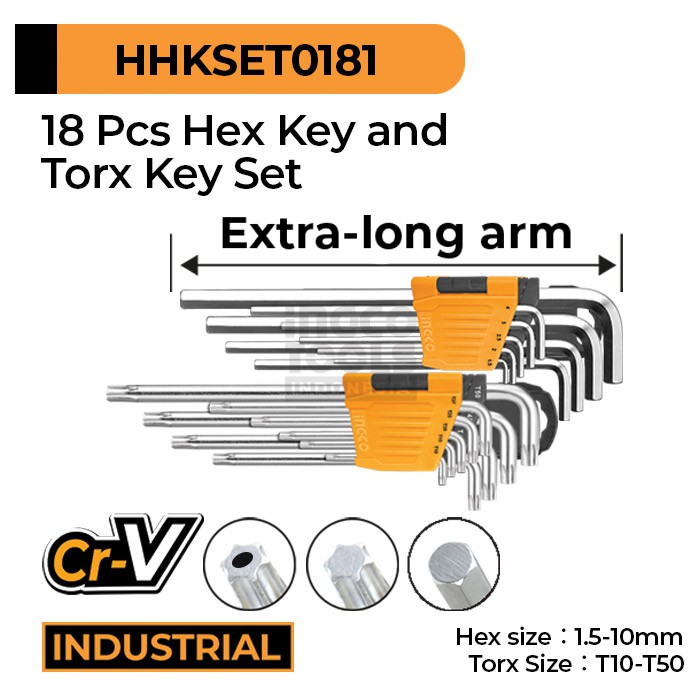 18-Pcs Cr-V Long Hex & Torx Key Set INGCO HHKSET0181 Paket Kunci L Bintang