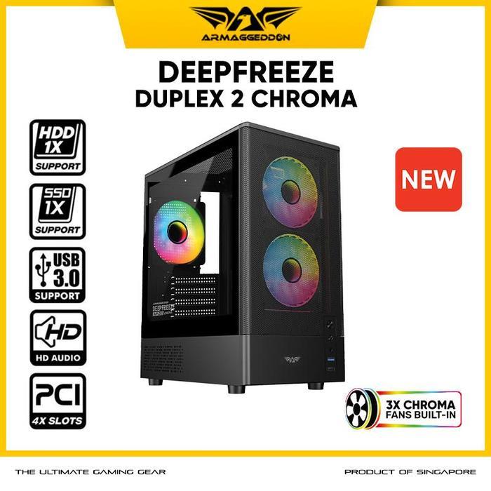 Casing PC Gaming Armaggeddon DeepFreeze Duplex 2 Chroma Micro ATX with 3x Fan RGB Built In