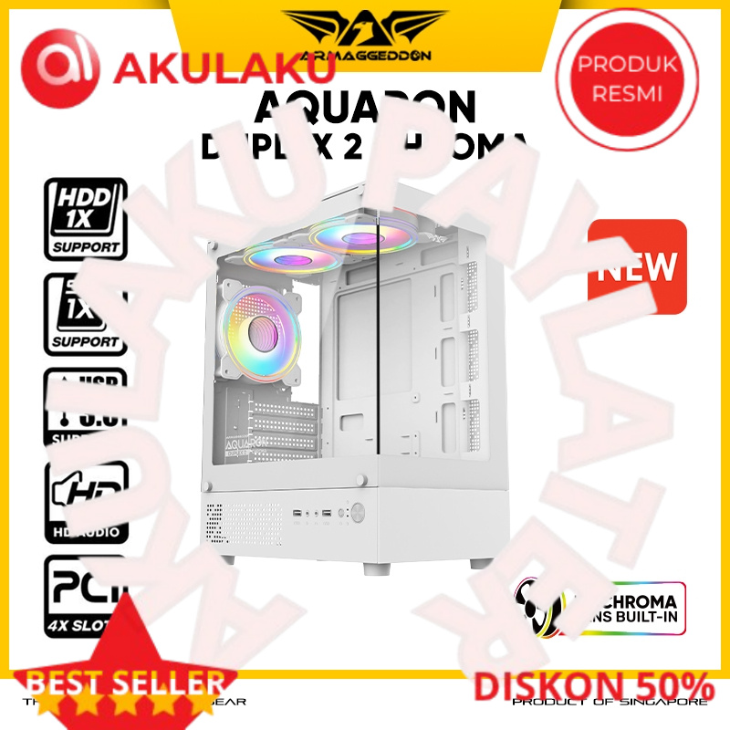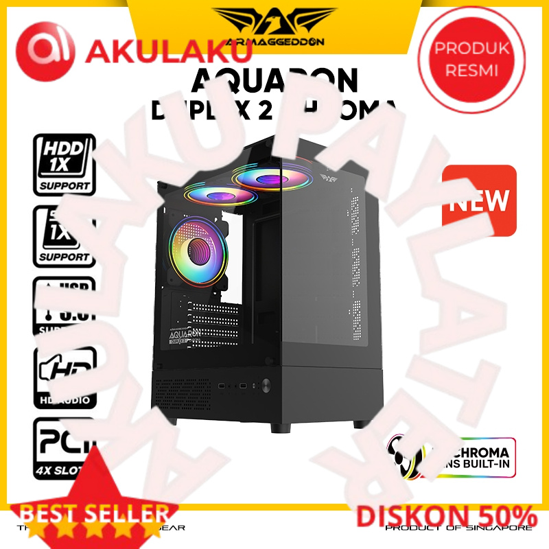 Casing PC Gaming Armaggeddon Aquaron Duplex 2 Chroma M-ATX with 3x RGB Fan Built In