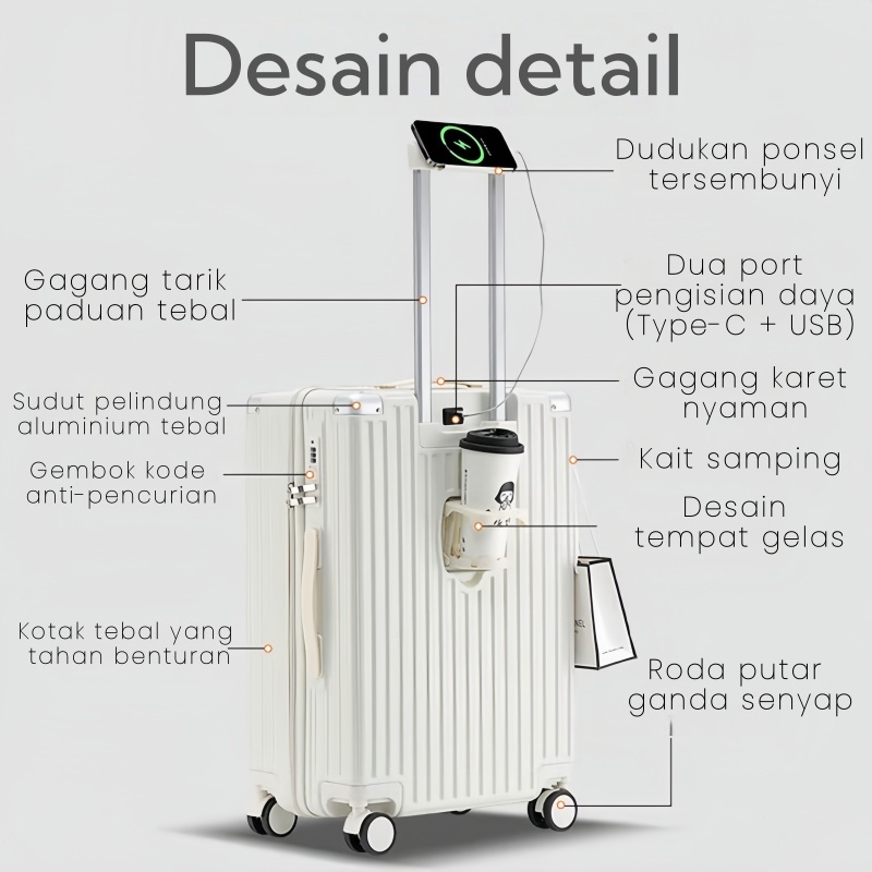 Jzr suitcase official store desain baru usb charger koper travel modis 20/22/24/26/28 inci kapasitas besar roda senyap-A909