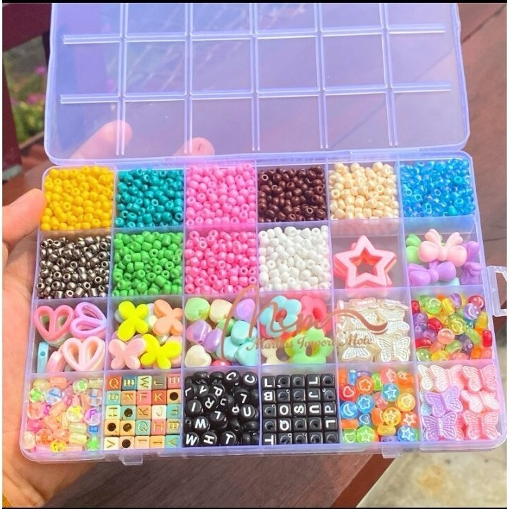 TERMURAH PROMO News Set Manik Manik DIY + Senar Lengkap Aesthetic Gelang Cincin Kalung | Meronce manik anak mainan eduka