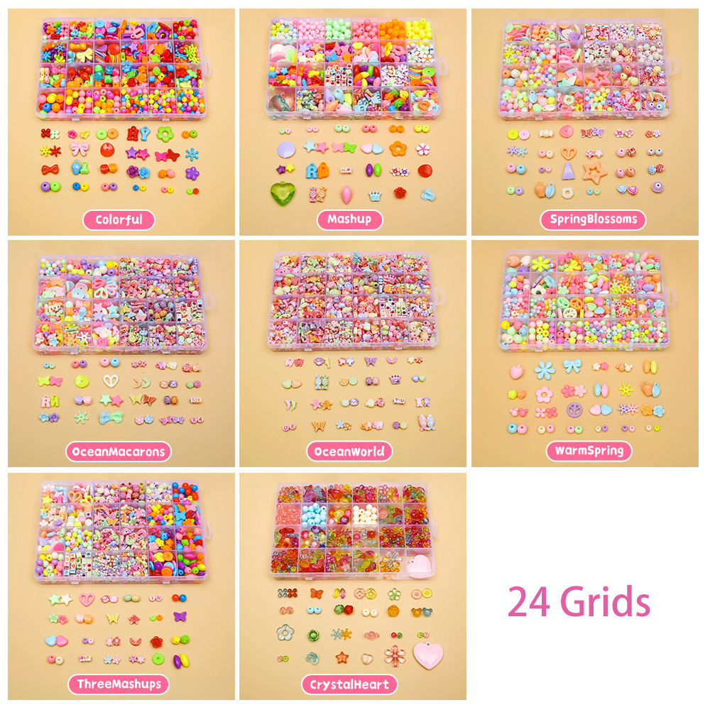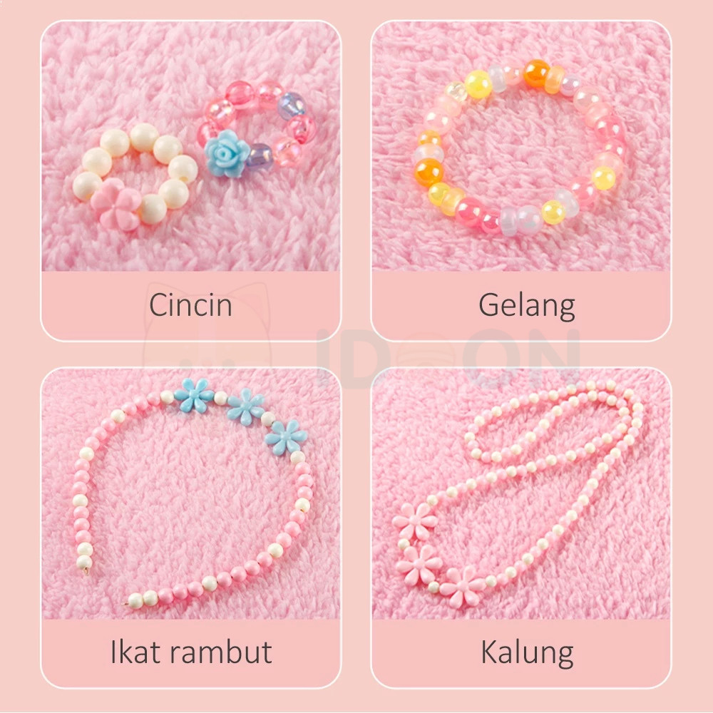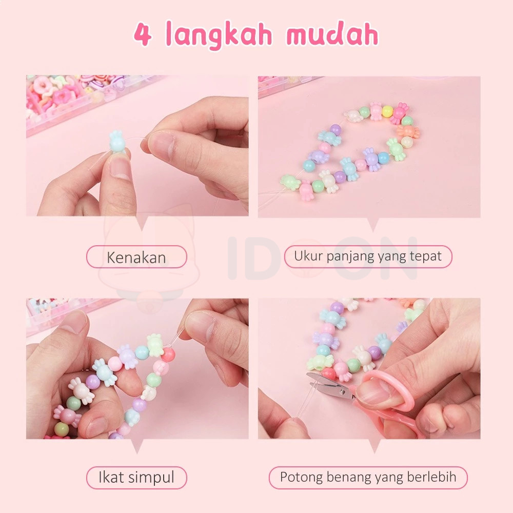Set Mote Manik Bahan Kerajinan Anak Anak DIY Kotak Diy Meronce Anak Mainan Meronce Manik-Manik Gelang Kalung Monterssori