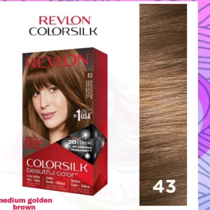 SUPER HEMAT ! REVLON COLORSILK BEAUTIFUL COLOR HAIRCOLOR 59X2ML-43 MED GOLDEN BROWN - -, - MURAH