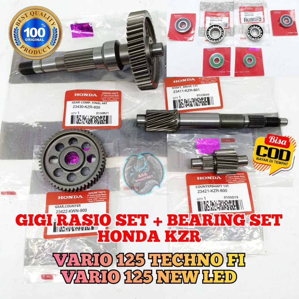 GIGI RASIO SET KZR + BEARING 6 pcs ASLI ORIGINAL motor HONDA VARIO Techno 125 fi old , VARIO 125 fi Esp LED GIR GARDAN G