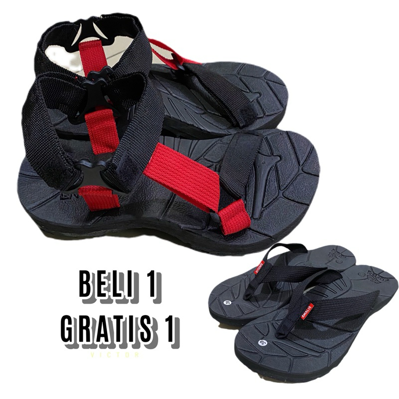 PROMO Beli 1 Gratis 1 Sandal Gunung DEWASA Pria Wanita Upper Polyster Webbing+Universal Strapping - Ukuran Jumbo Size 36