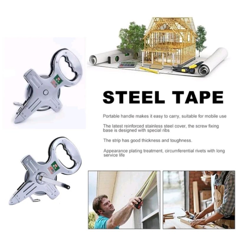 Meteran Tancap Stainless Steel 50-100 Meter Meteran Roll Tancap Tanah Plat Stainless