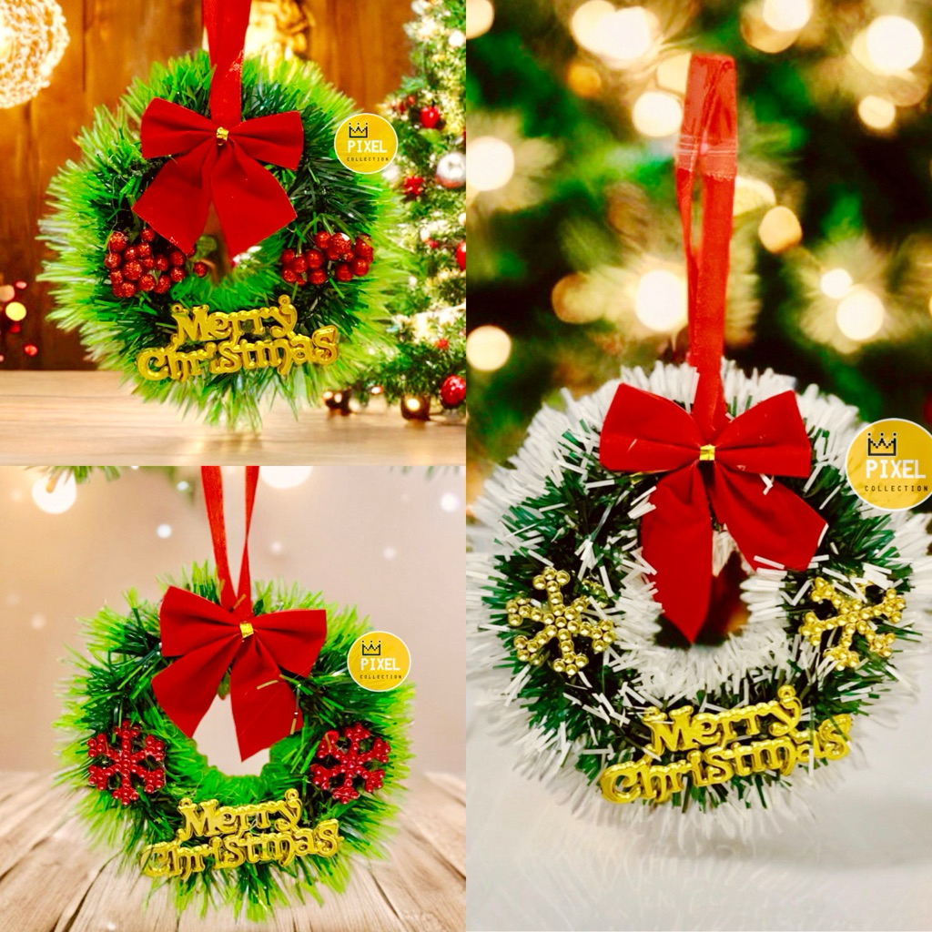GARLAND polos dekorasi natal Merry Christmas aksesoris ornamen lingkaran Garland natal Krans
