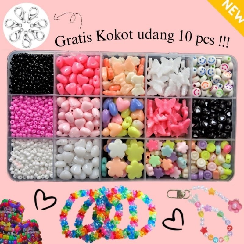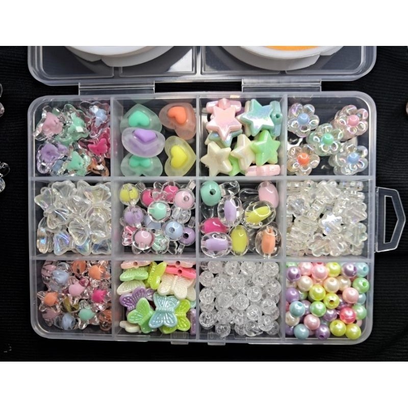 JM manik manik 1 set kotak/ manik 1 set 12 skat/ manik 1 set 10 sekat/ manik manik serok 1 set kotak/DIY manik 1 set aes