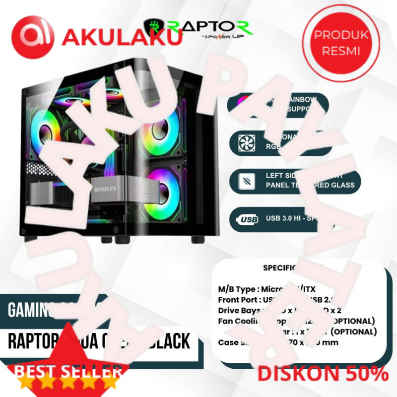Casing Gaming Raptor GLASS FLOW Q BK Series Black M-ATX / ITX - Casing Gaming