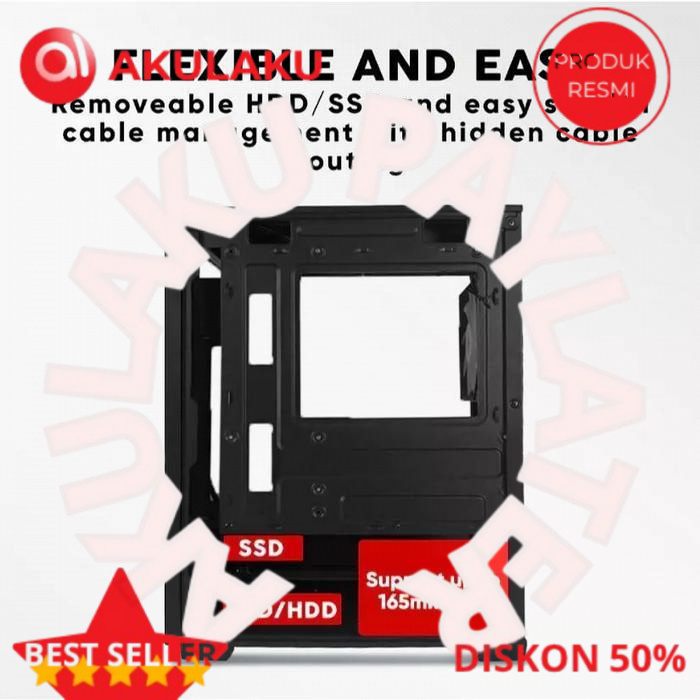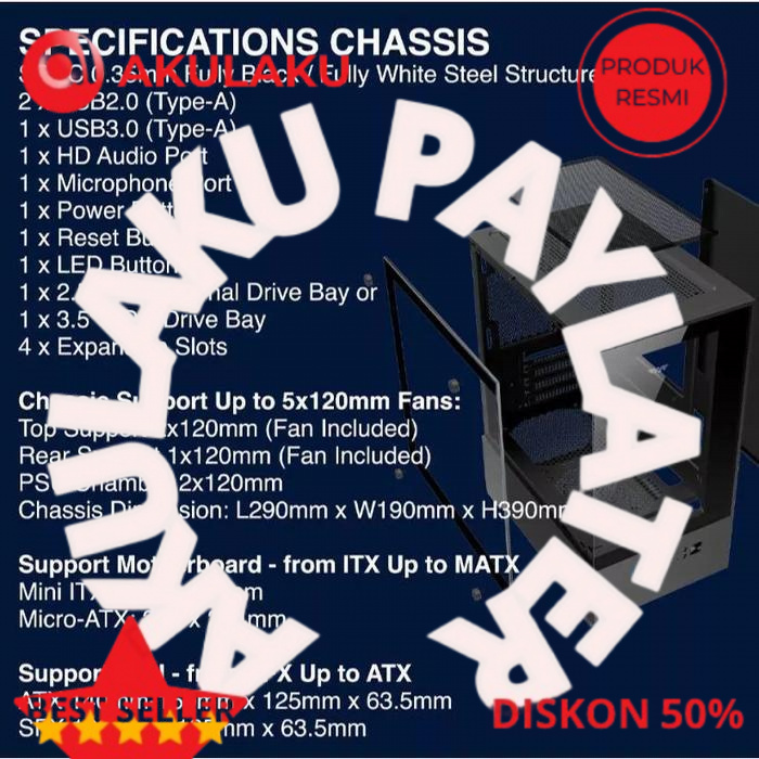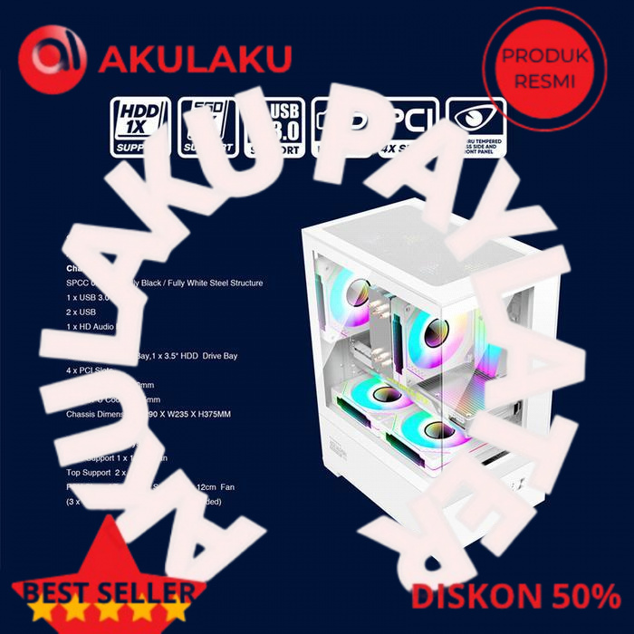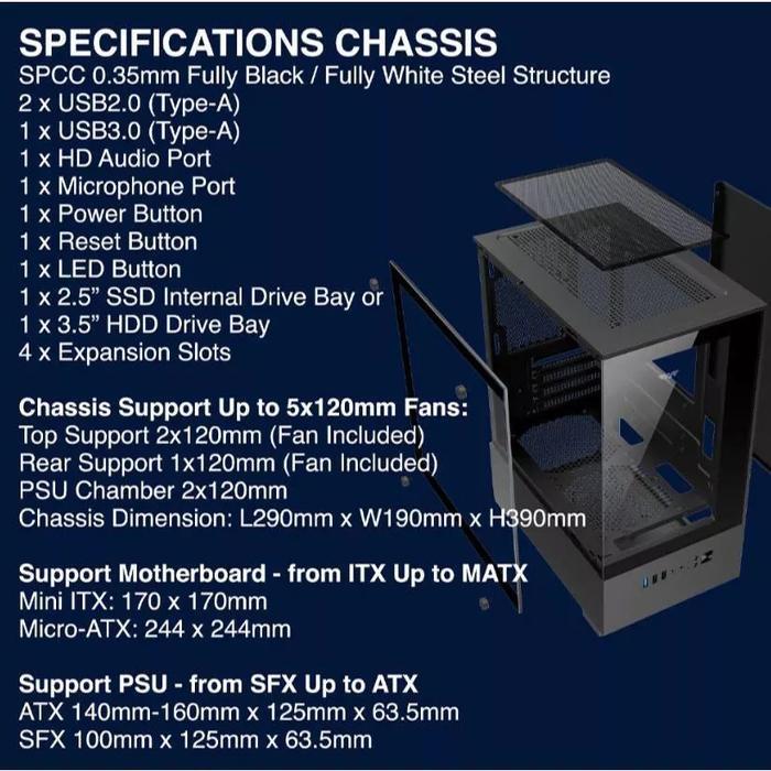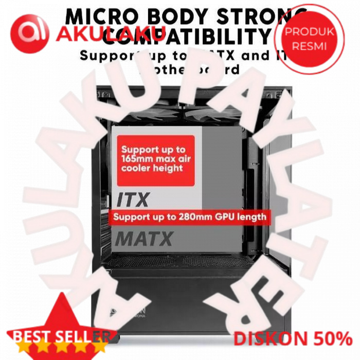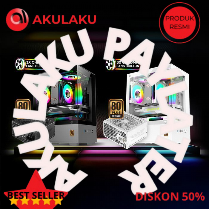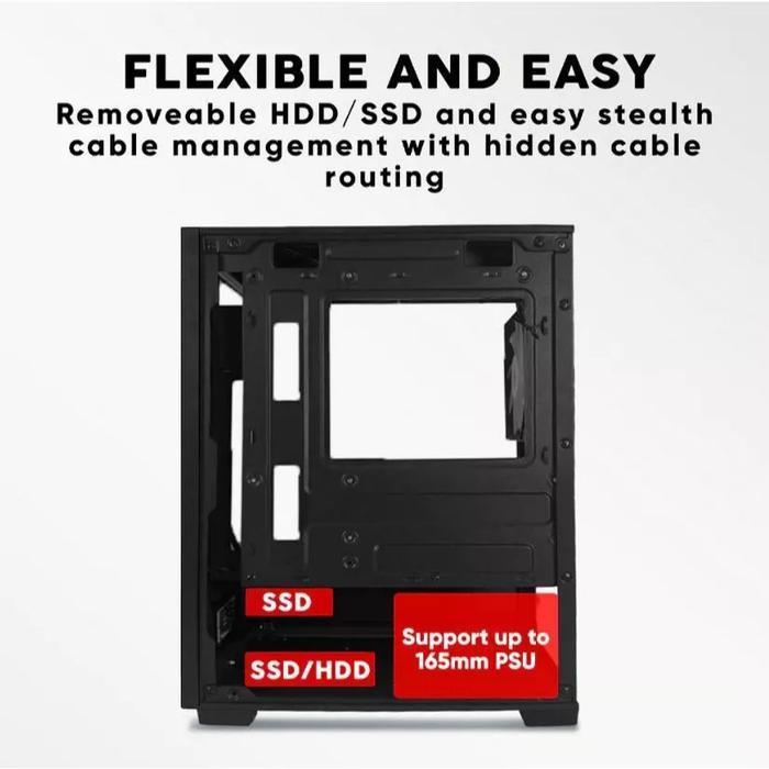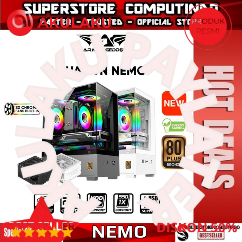 Casing PC Gaming Armaggeddon Aquaron NEMO MATX Dual Chamber with Power Supply and 3x Fan RGB Built In
