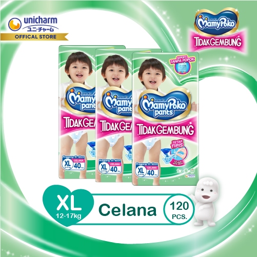 MamyPoko Pants X-tra Kering Slim Tidak Gembung - XL 40 Popok Celana Isi (3 Packs) Produk ASLI ORIGINAL PREMIUM