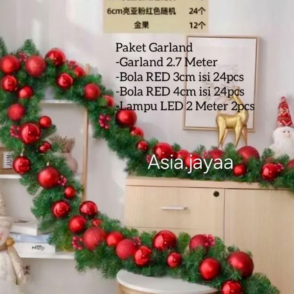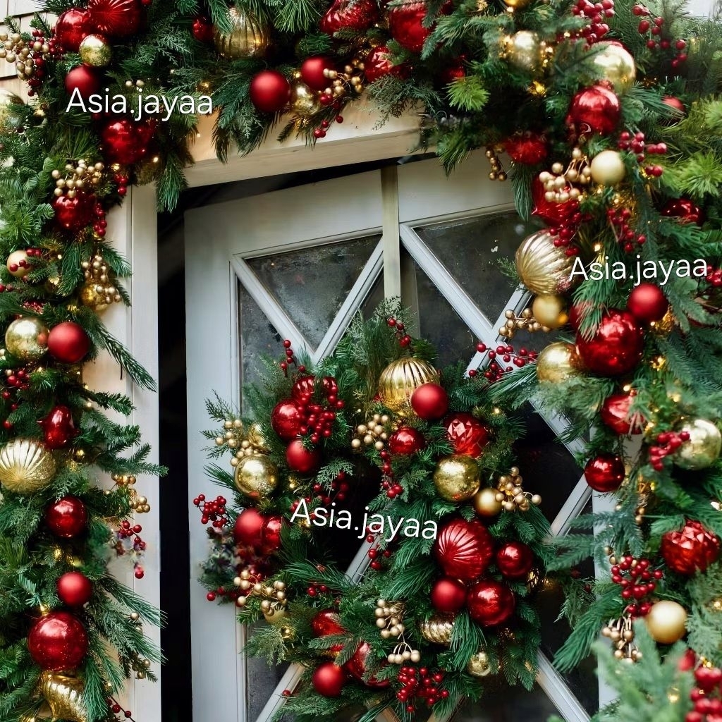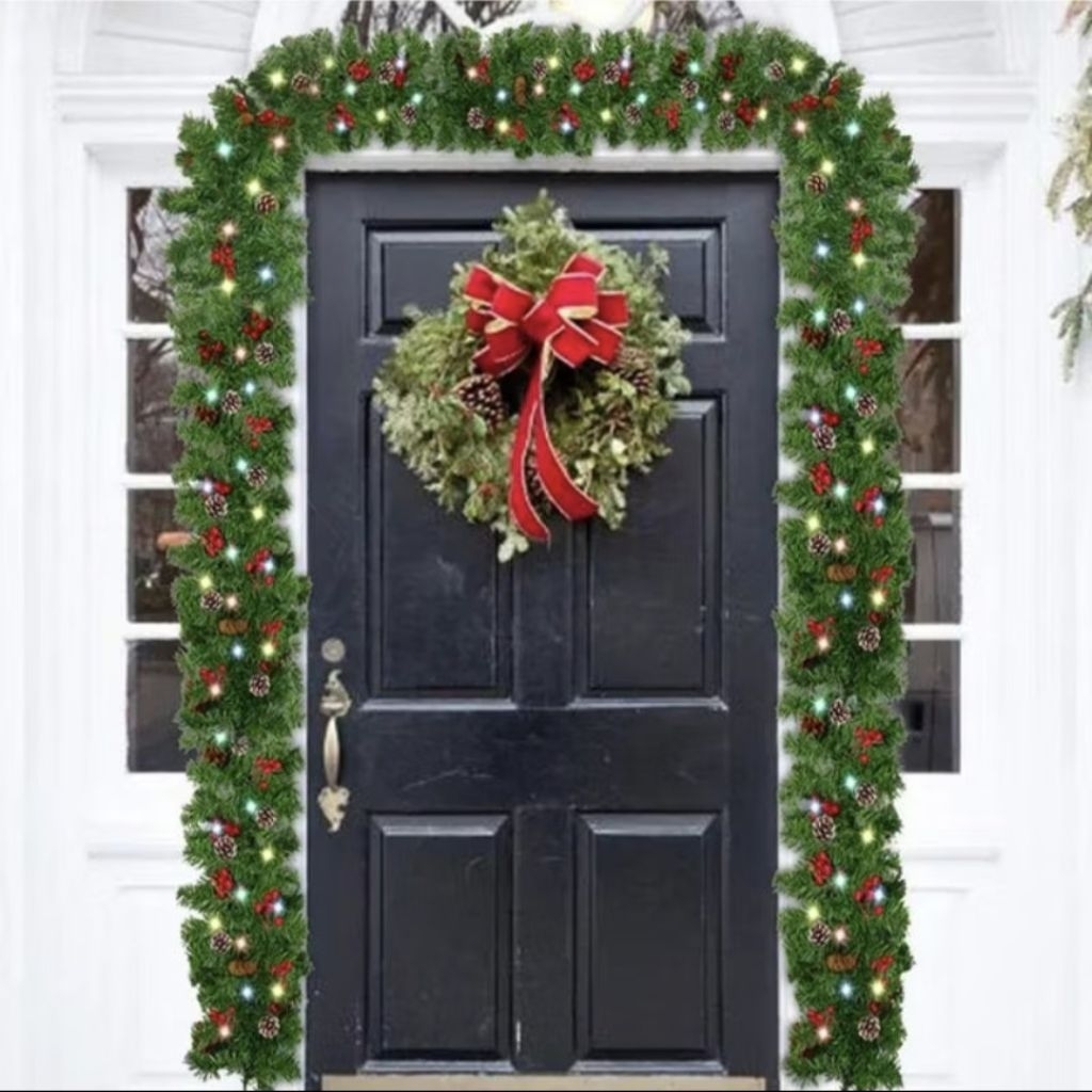 2.7 Meter Garlan Daun kawat lilit 200T premium Hiasan dekorasi natal / Dekorasi natal