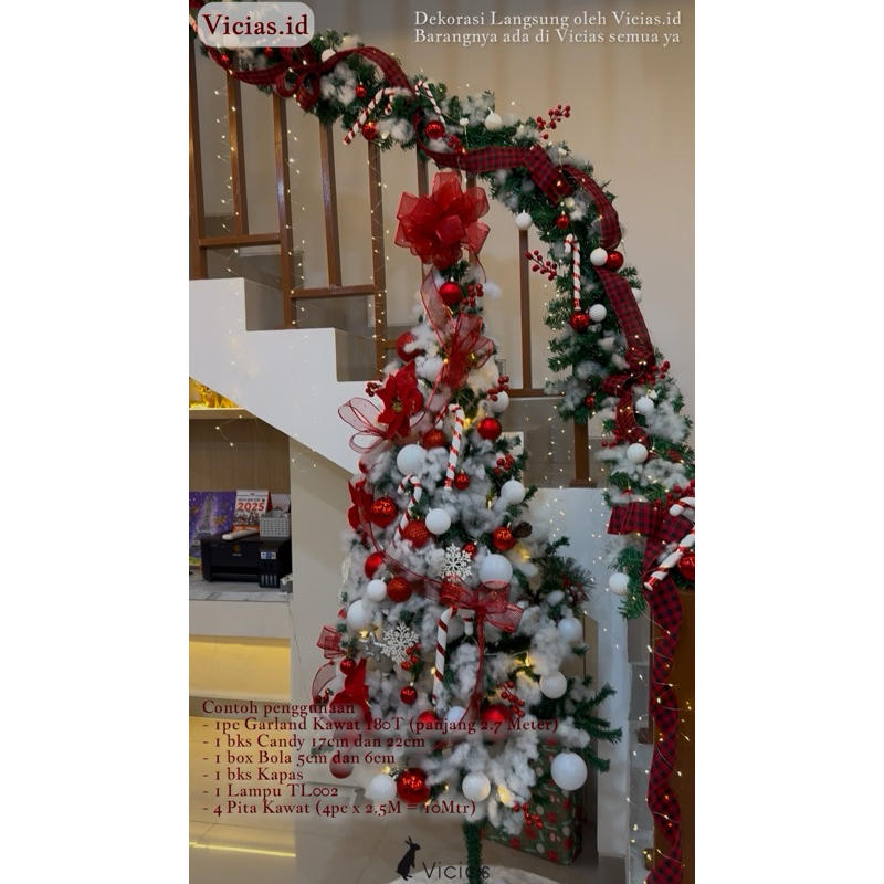 Garland Natal 2.7 Meter Daun KAWAT Lingkar Hiasan Berry Cherry Christmas Grosir Jakarta Murah