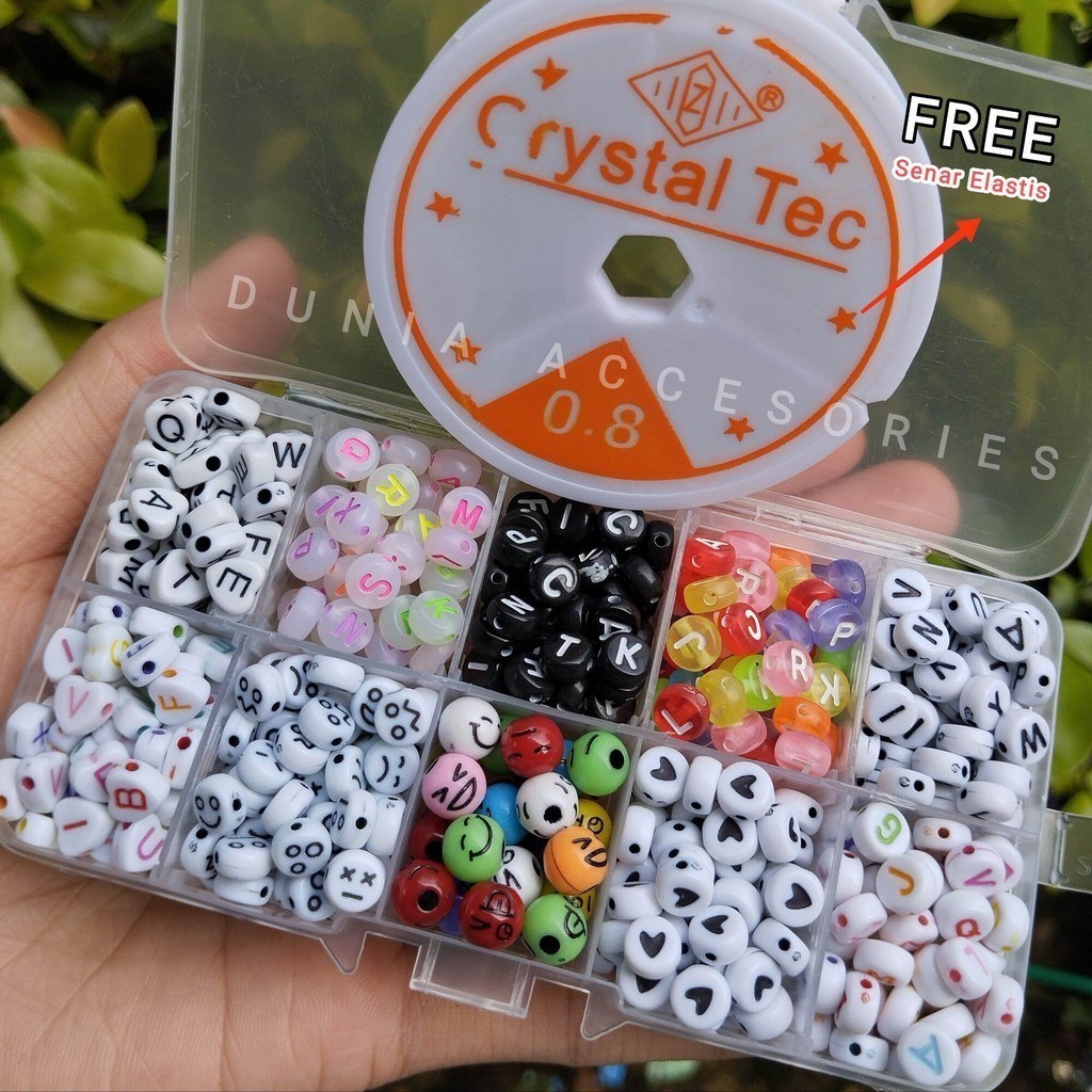 Gratis ongkir !!! DIY Manik Manik Huruf Bulat Mix Set Box Free Senar Elastis Paket Aesthetic