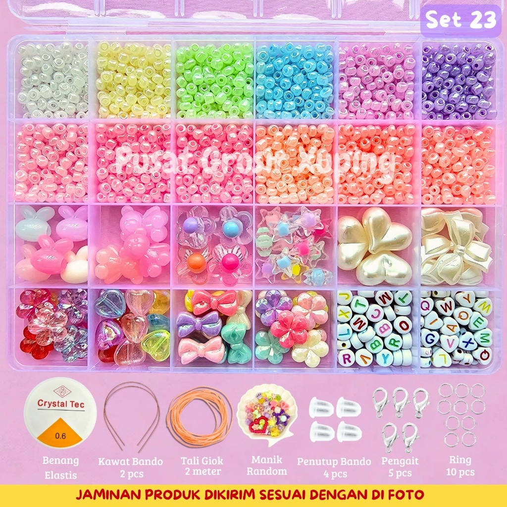 PGX - DIY Craft Kit Gelang Manik Manik Aesthetic - Manik Manik Pasir 1 Box Lengkap - Set Pernak Pernik Meronce Mote - SM