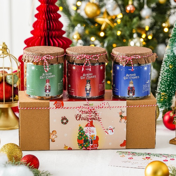 hampers natal Christmas Hampers - Oatmeal Cookies 3 Jar + FREE KARTU + TALI + BUBBLE WRAP | LUCKYBITE Hampers terlaris