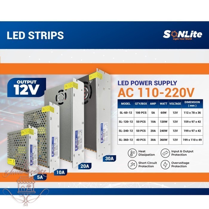 SONLITE LED Power Supply Travo AC 110-220V 5 Ampere - 30 Ampere - 20A