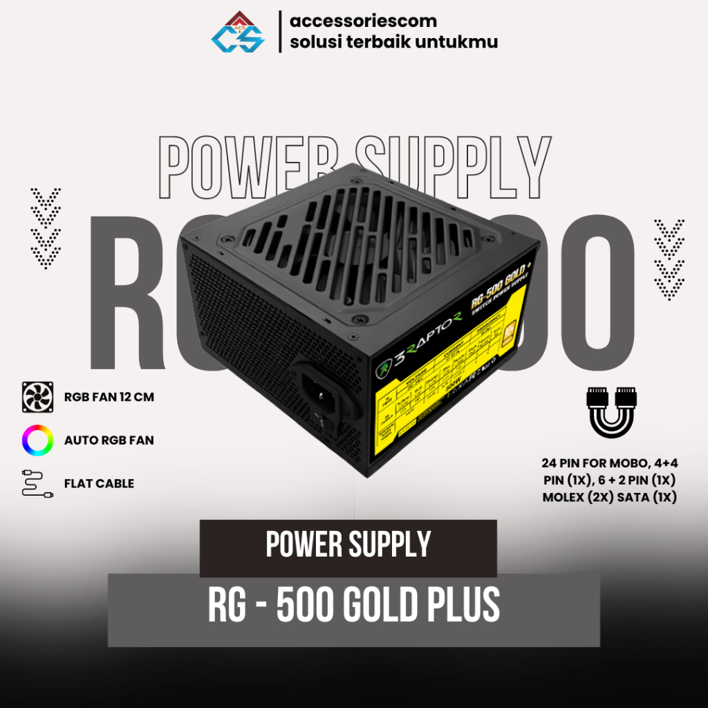 Power Supply PSU Gaming 3 RAPTOR RG-500 + 500 Watt Fan RGB