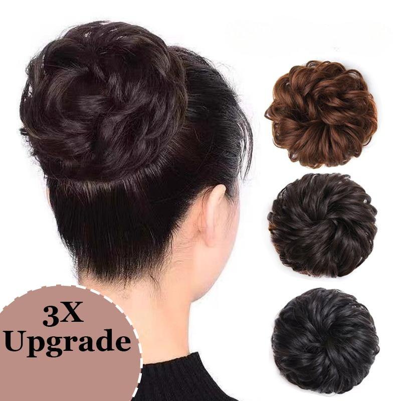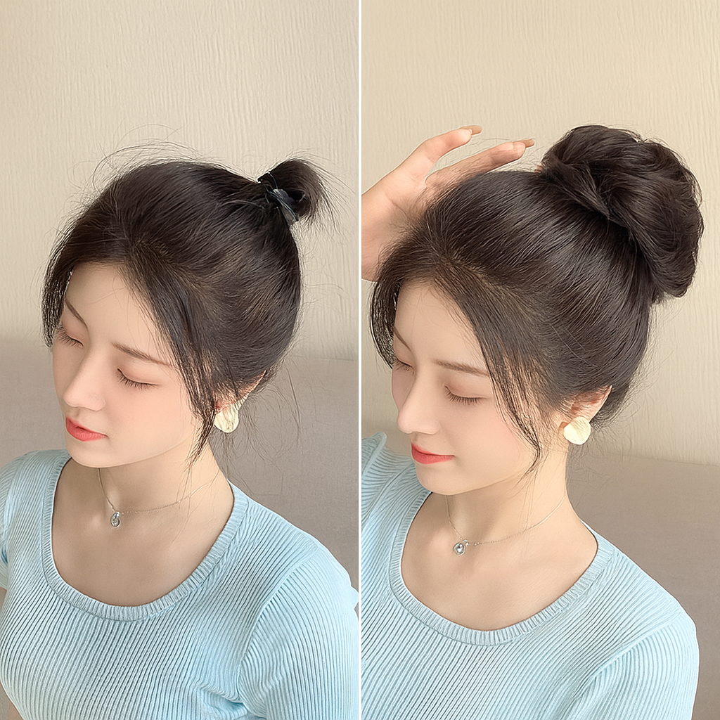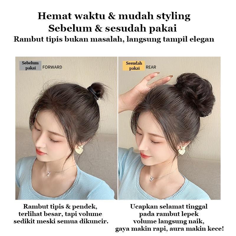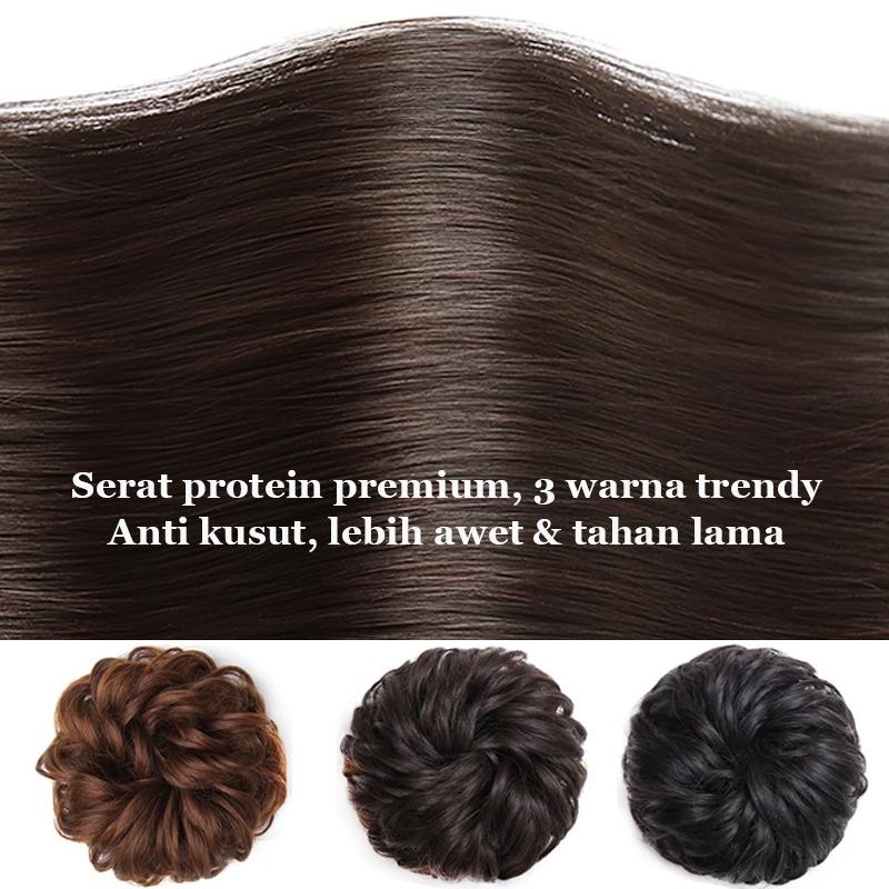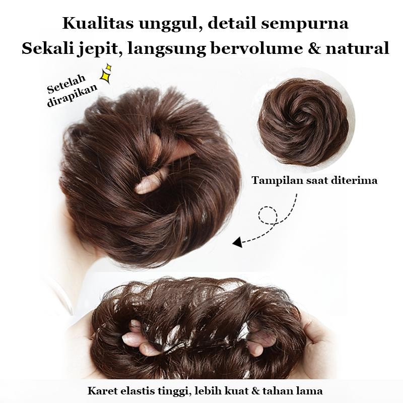 Karet Scrunchie, Korean Fun Bun, Cepol Rambut Palsu, Sanggul Ikat Rambut Palsu, Cepol Donat H002-K