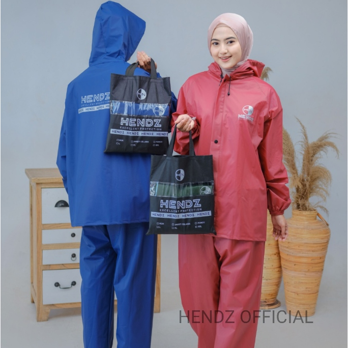 Jas Hujan HENDZ Raincoat Pria Wanita Jaket Celana Bahan PVC Karet 0,25 Tebal Lentur Anti Rembes