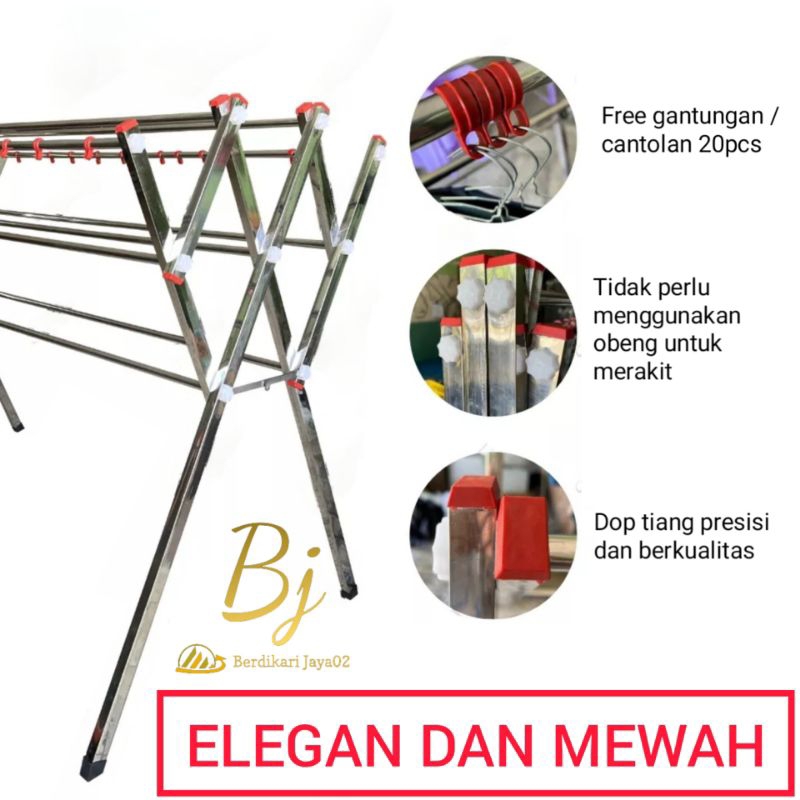 [Mall] JEMURAN STAINLESS STEEL JUMBO 180 CM / PEMASANGAN MUDAH
