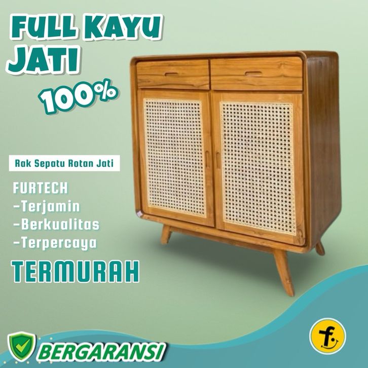 Rak Sepatu Kayu Jati Scandinavian Mix Rotan Minimalis - Bufet Sepatu Multifungsi - Lemar Rak Sepatu
