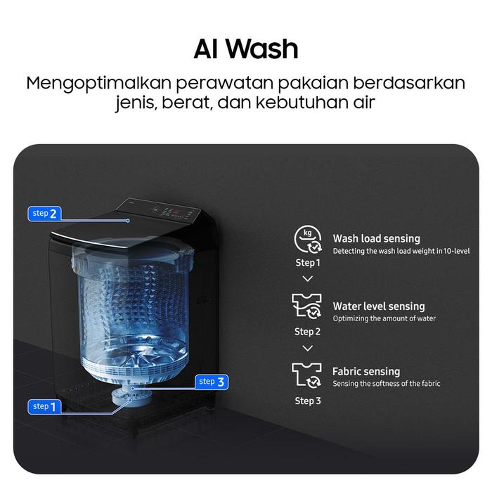 ( OFFICIAL STORE ) Samsung Mesin Cuci Bespoke AI Top Load Washer 13kg | WA80F13 | Hitam / Deep Charcoal. - WA80F13S5C/SE