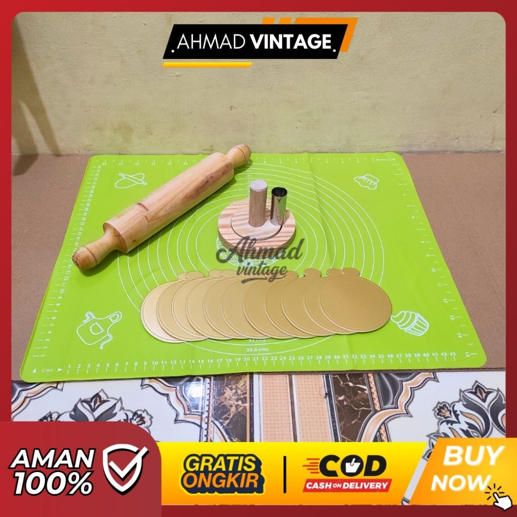 1 SET Cetakan donat kayu + Alas Adonan + Rollpin kayu + Alas gold 50 pcs Paket Hemat Alat pembuat Donat food grade kitch