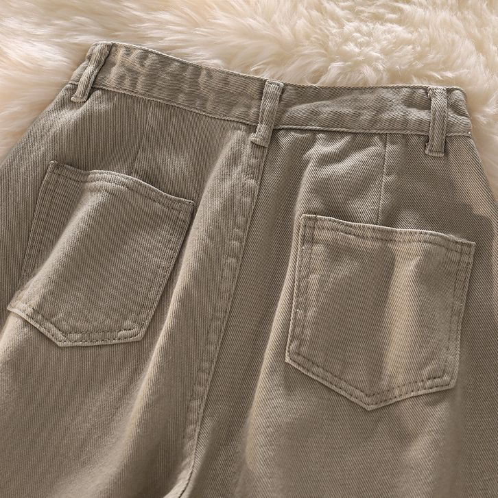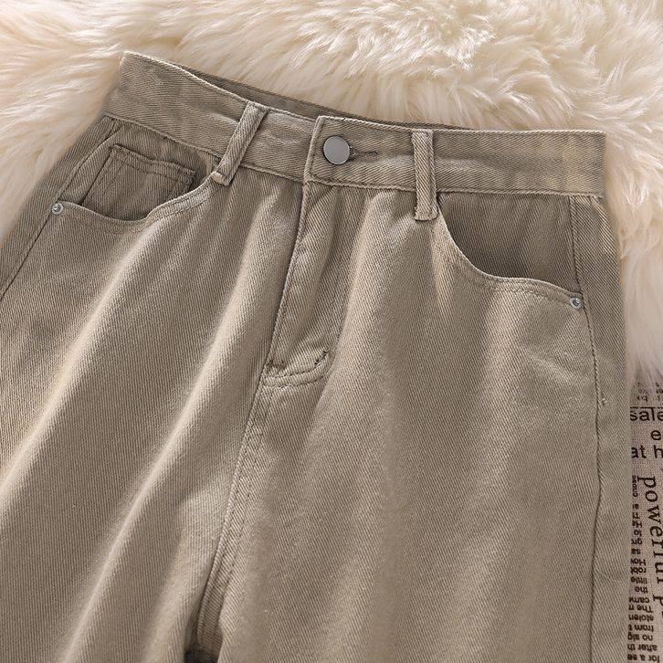 [Star] Celana Jeans Wanita Size S-XXL Warna Khaki Highwaist Loose Jeans Korean Style Import