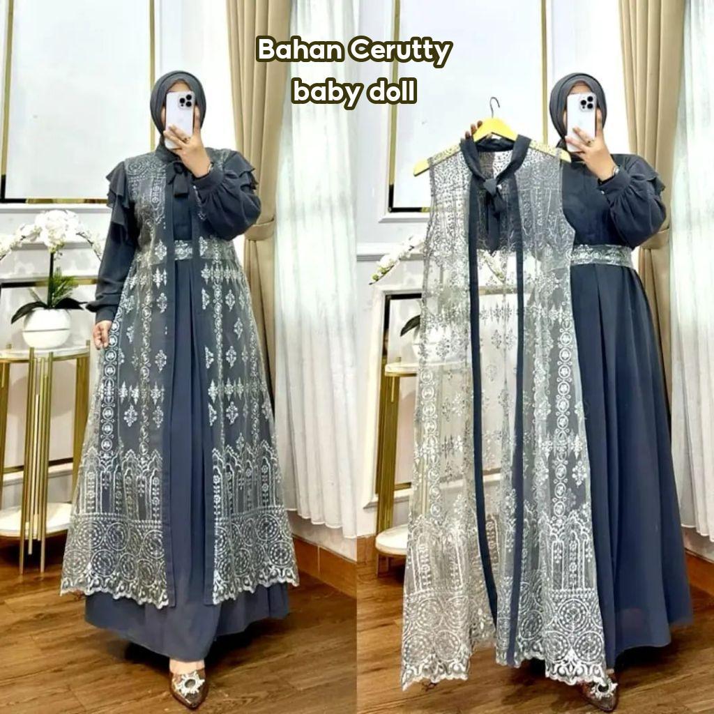 GAMIS BRUKAT KAILA Dress Set + Outer Terlaris 2024 Gamis Kondangan Wanita Kekinian Gamis Pesta Mewah Elegan Warna Hitam