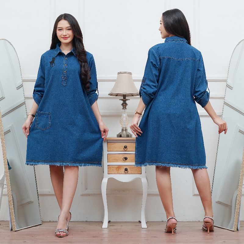 Tunik Jeans Wanita Dewasa Terbaru 2025 Kekinian Import Harga Murah Model Jumbo Bordir Ld 110,ld 120 dan ld 130cm