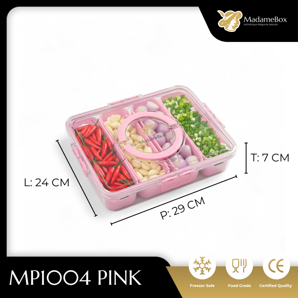 Kotak Makan Madamebox Mp1004 Wadah Penyimpanan 4 Sekat Penutup Plastik Pet Pp Pink