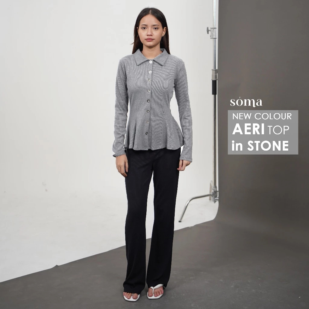 Cardigan Wanita Peplum Knit Aeri Top Babydoll Series Premium Cardigan Korean Style Motif Polos Lengan Panjang Terlaris