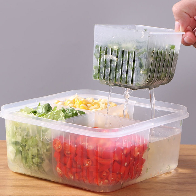 Kotak Saringan Buah Sayur Wadah Bawang Dengan Penutup Serbaguna Transparan Praktis