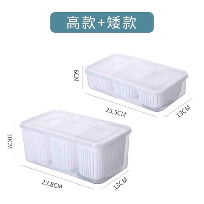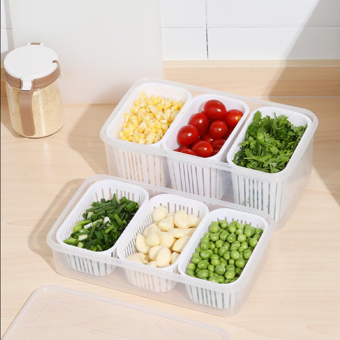 Kotak Saringan Sekat 3 Premium Penyimpanan Makanan Sayur Buah Kulkas Serbaguna