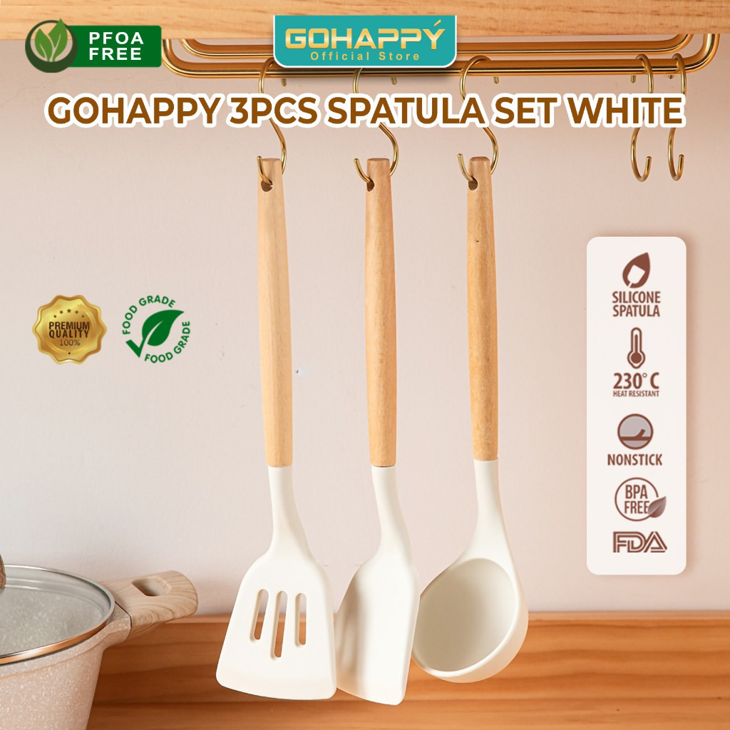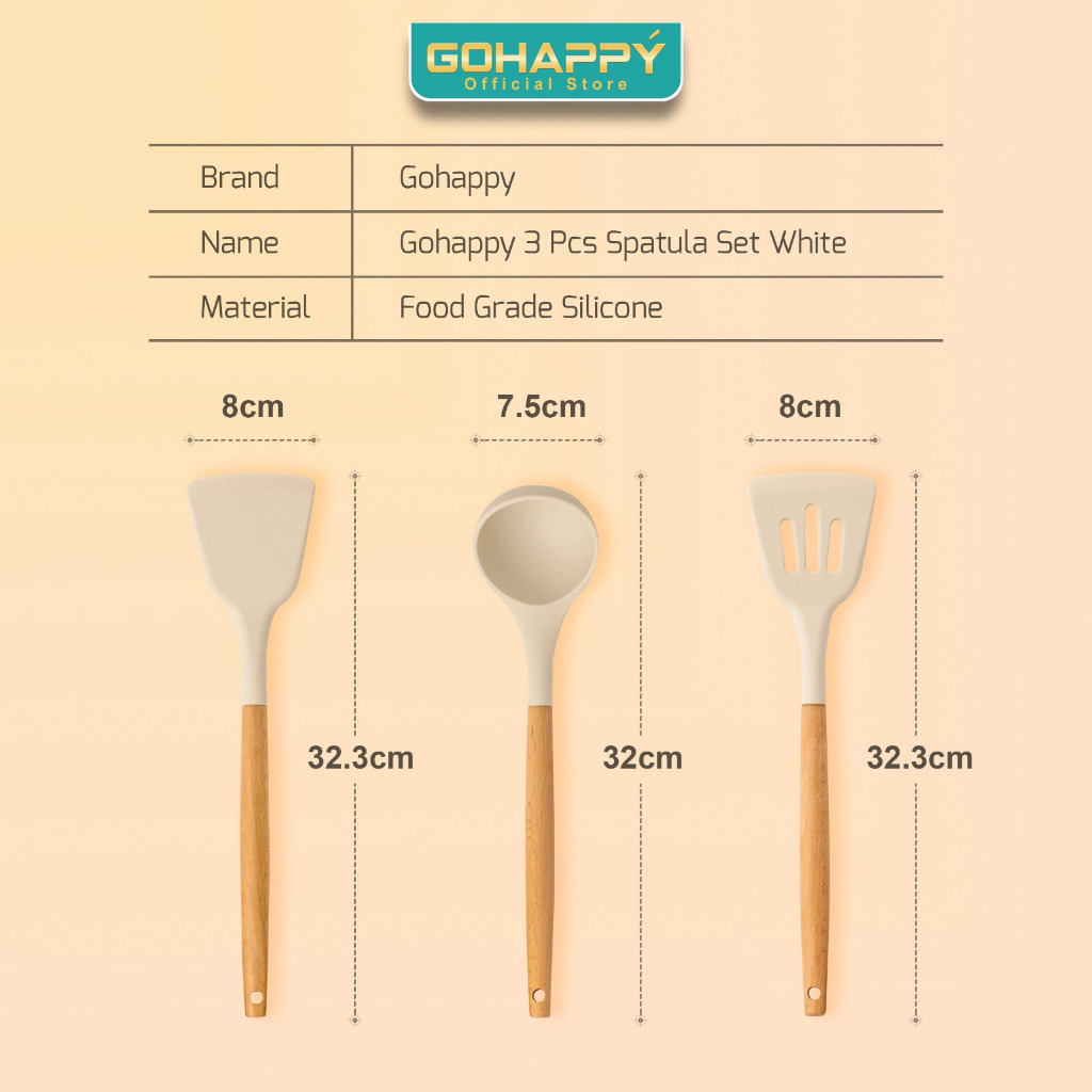 Spatula Set Silicone Gohappy 3 Pc Sutil Tahan Panas Sendok Masak Sup Turner Sendok Berlubang