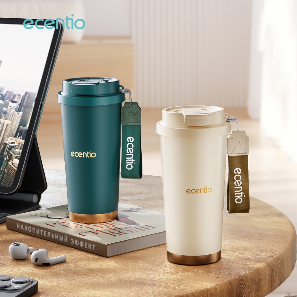 Tumbler Kopi Ecentio 530Ml Stainless Premium Tahan Dingin 24 Jam Botol Minum Portable Aesthetic