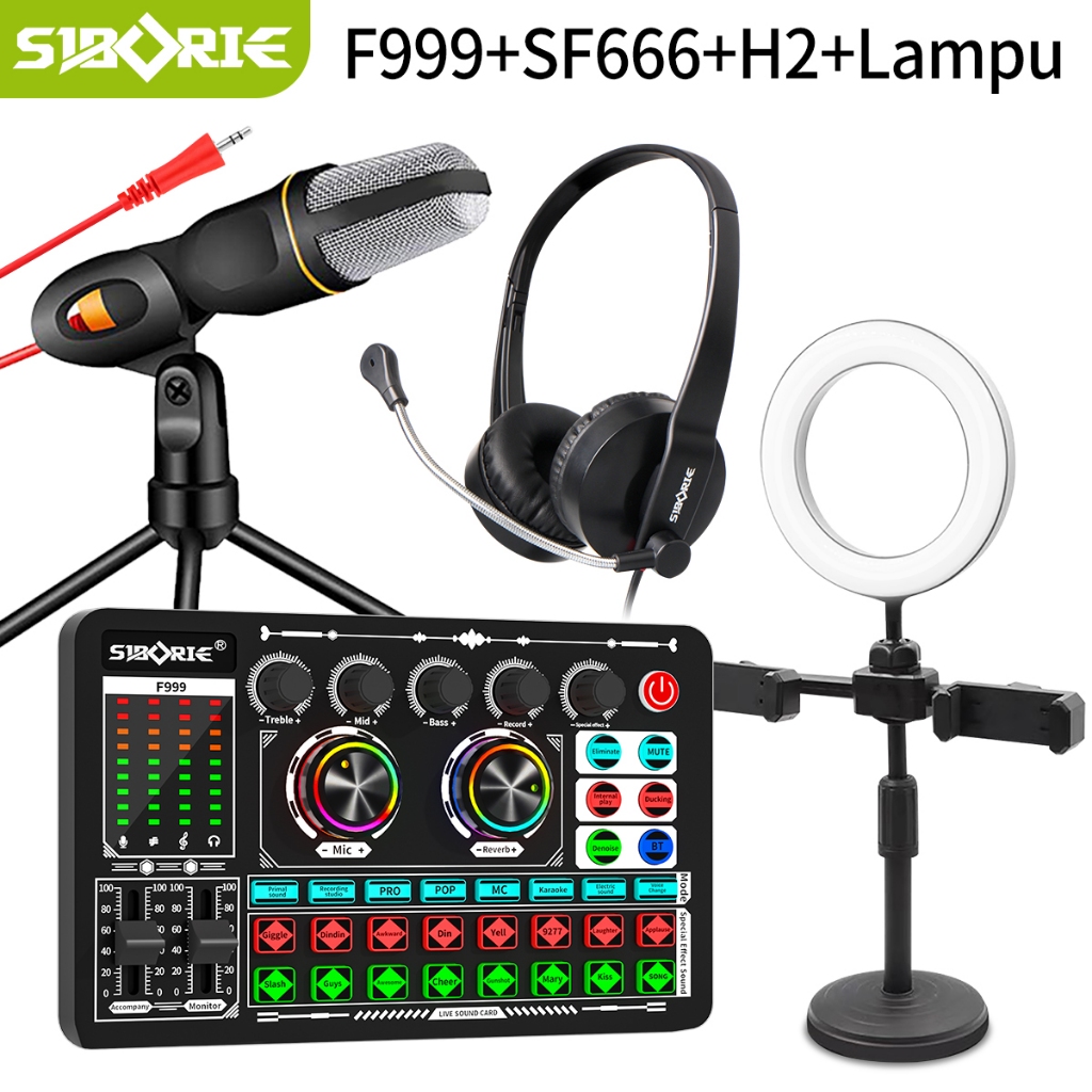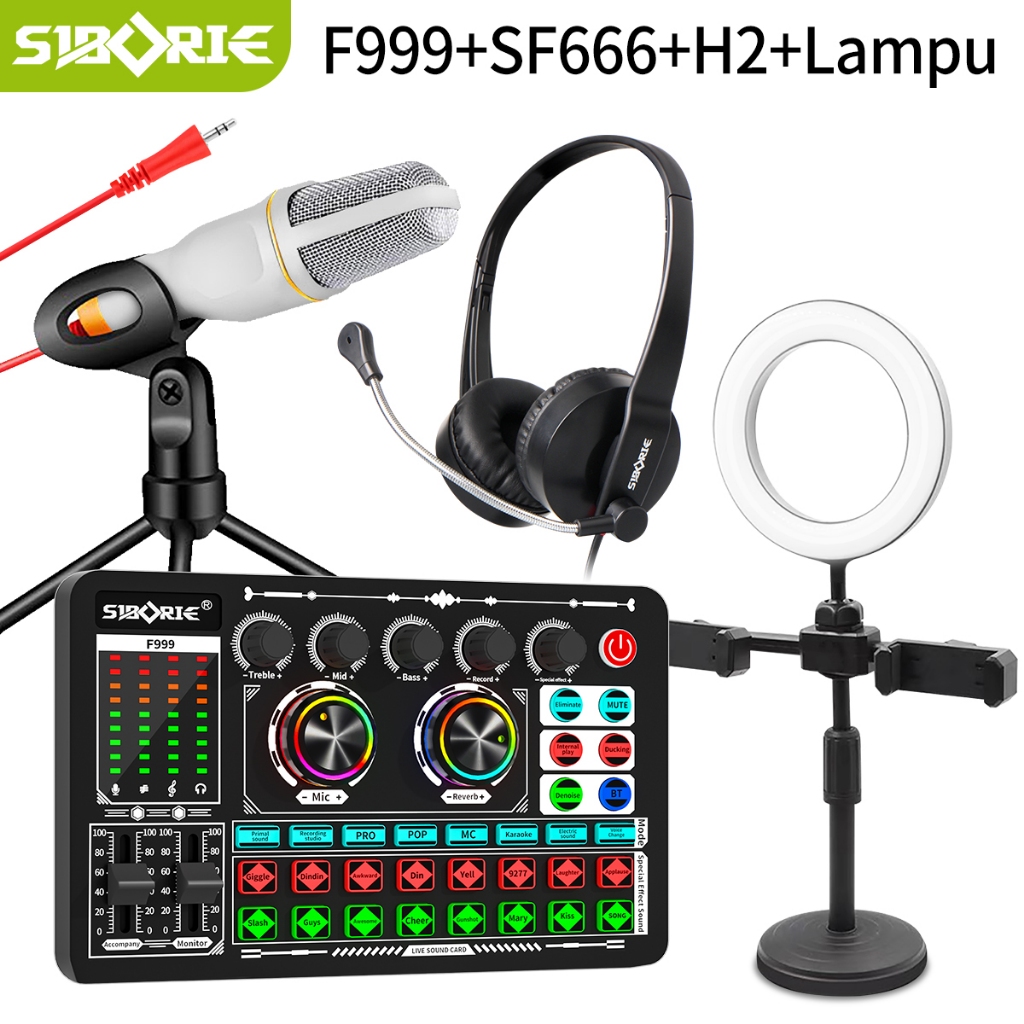 Siborie F999+SF666+H1/H2+Lampu Paket Komplit Live streaming of all kit eqipment Sound Card Microphone Headphone lampu se