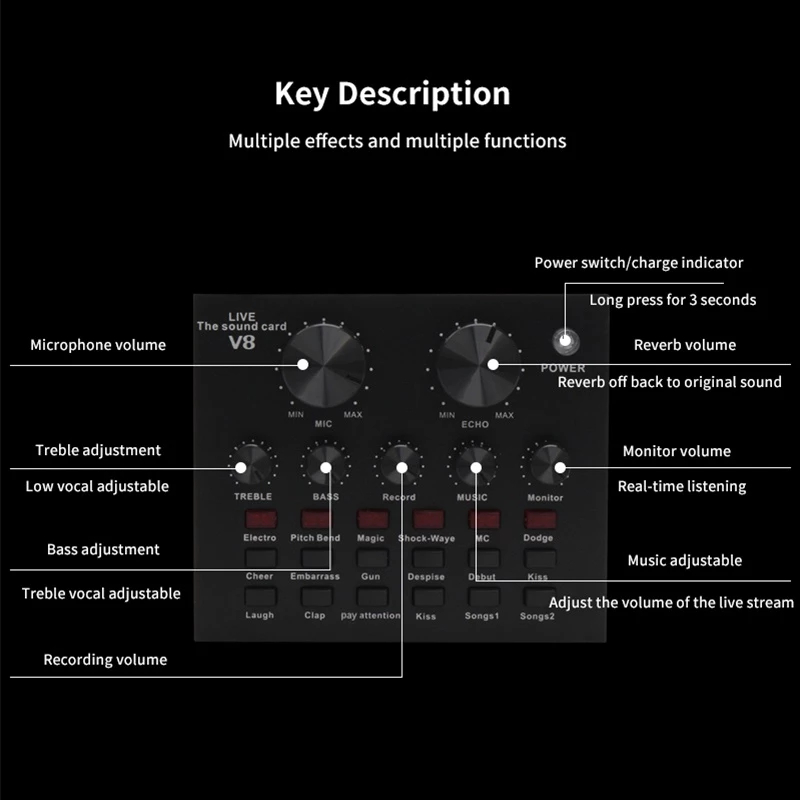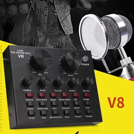 Live soundcard v8 mixer external sound card V8 audio microphone live singing