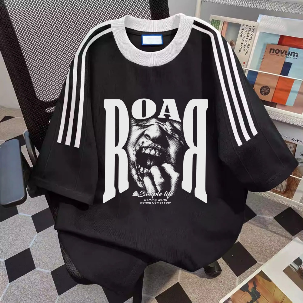 Roar pencetakan Gaya hip hop Amerika Kaos Pria Dicetak Tiga Garis Kaos Lengan Pendek Pria Lengan Pendek jersey Atasan Putih kaos termurah oversize pria atasan pria