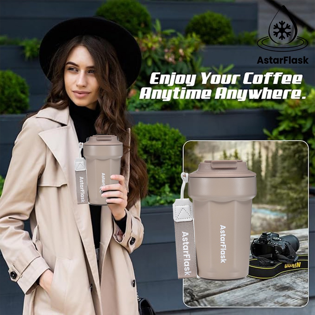 Tumbler Aesthetic Coffee Mug Astar 380Ml Botol Minum Kopi Teh Portable Stainless Sus316