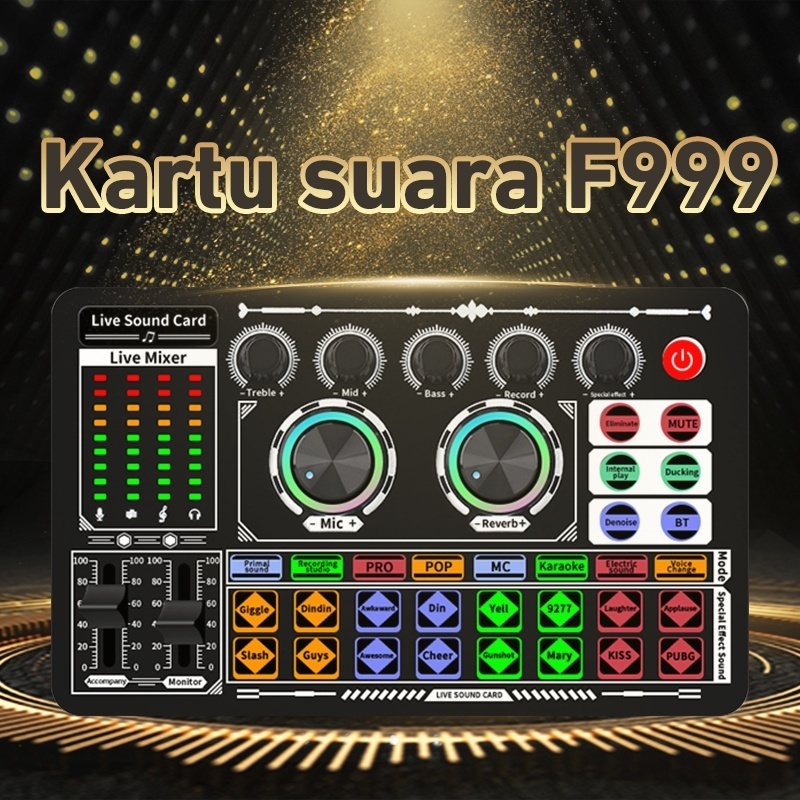 F999 Sound Card Siaran Langsung - Mikrofon Bernyanyi Universal untuk Ponsel dan Komputer Audio