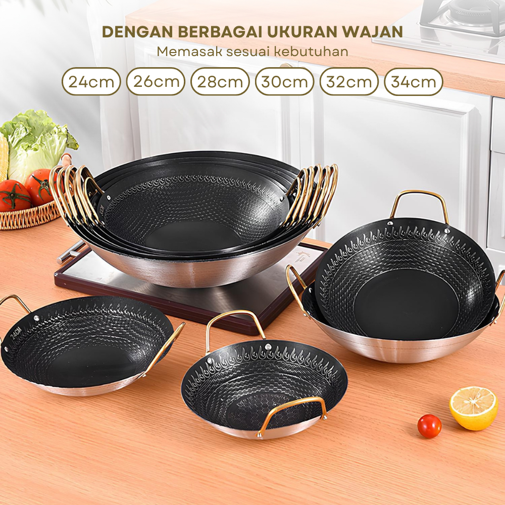 Wajan Stainless Anti Lengket Funkoo Premium 3 Ukuran Kuali Serbaguna