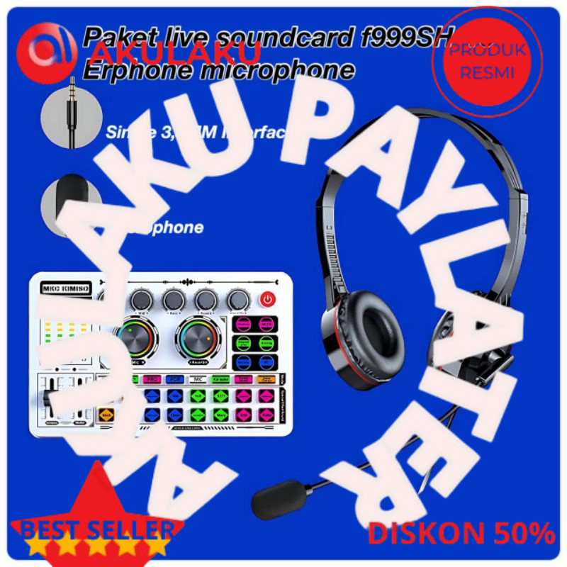 Paket Sound Card F999-SY490 Set Peralatan Live Streaming dan Karaoke Plus Headphone