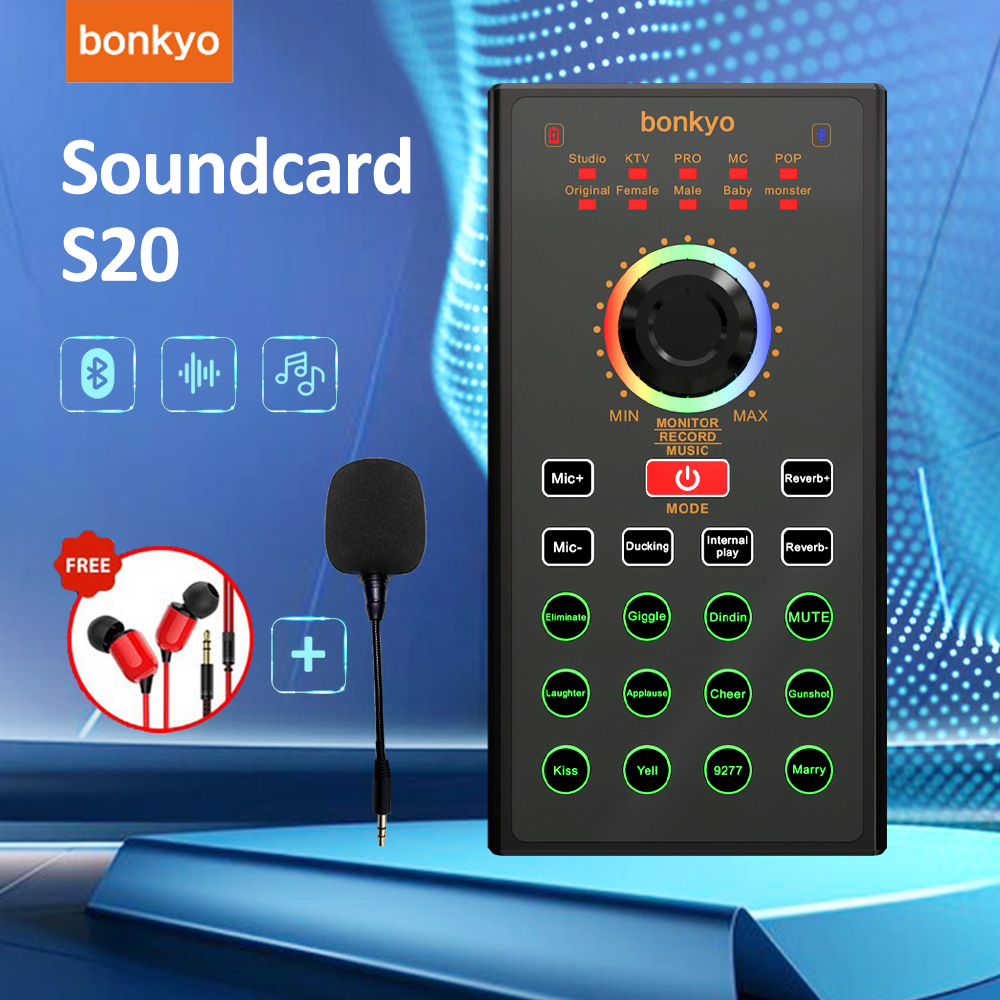 Bonkyo S20 Sound Card Peralatan Siaran Langsung Luar Ruangan Ponsel Kartu Suara Genggam Luar Ruangan Khusus