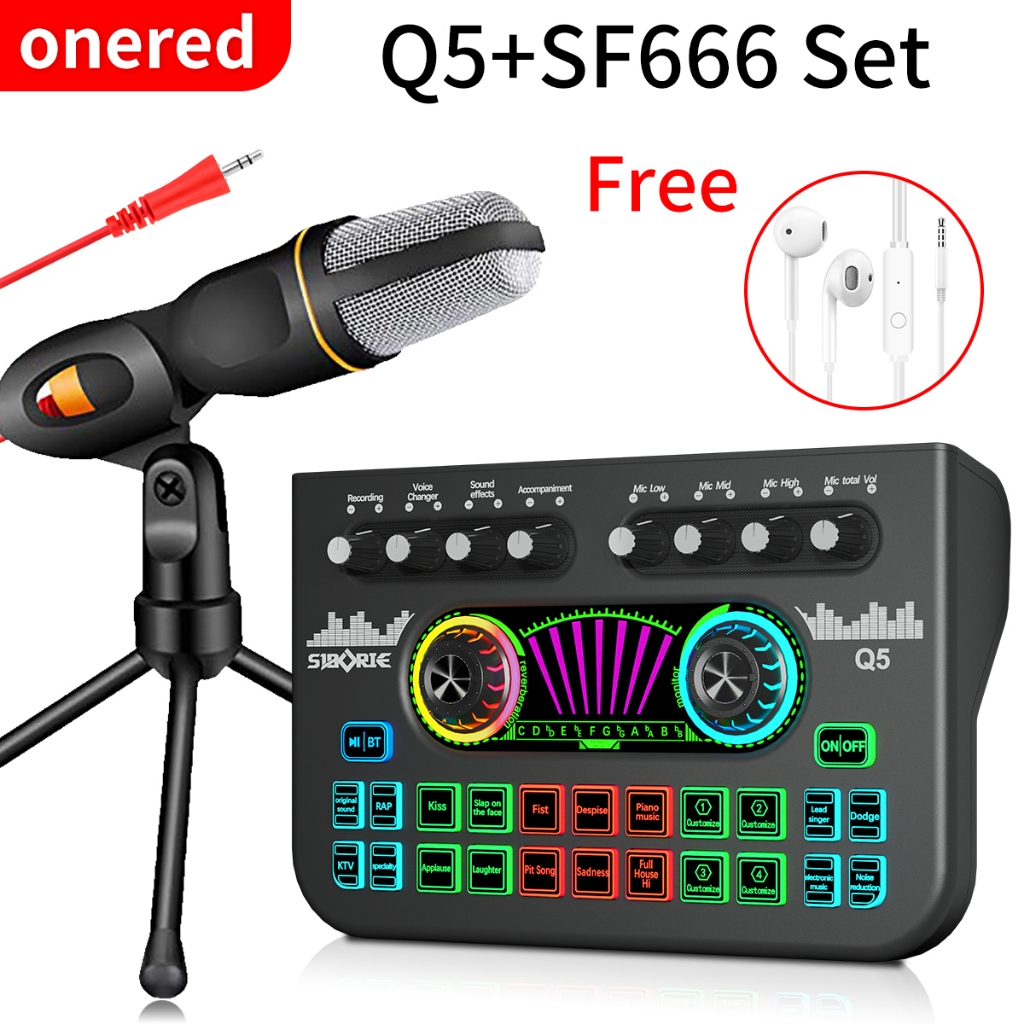 Onered Q5 Soundcard Original Paket Lengkap Mixer Bluetooth sound card for Streaming Langsung Siap