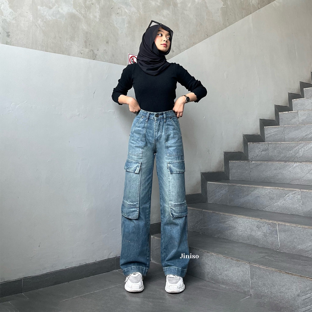 [Star] cargo highwaist loose jeans 555 psycho - jiniso