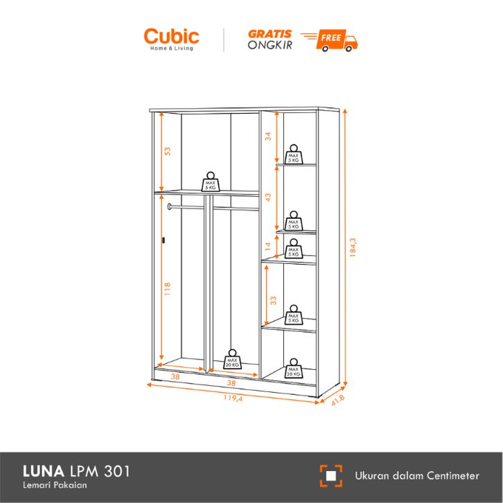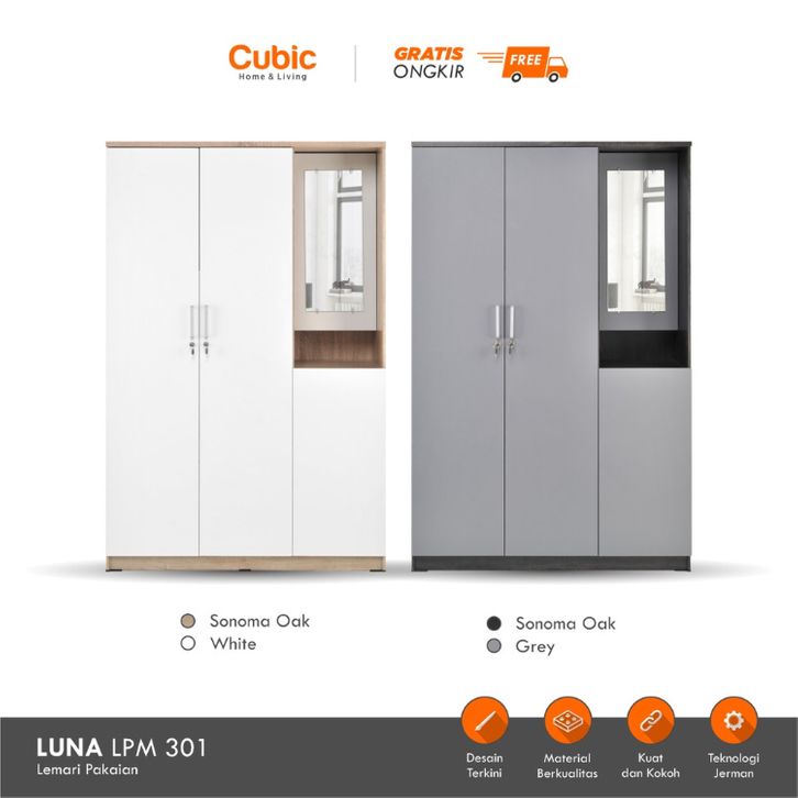 Lemari Pakaian Pakaian 3 Pintu Cermin Minimalis 3 Pintu / LUNA LPM 301