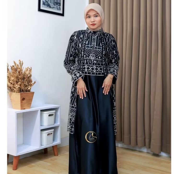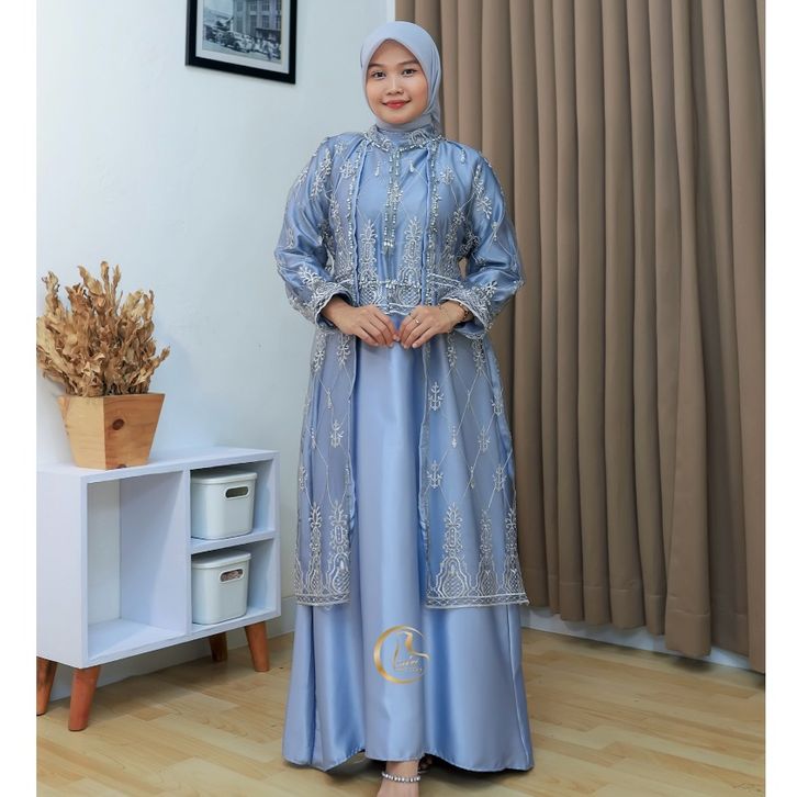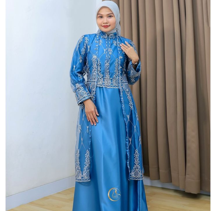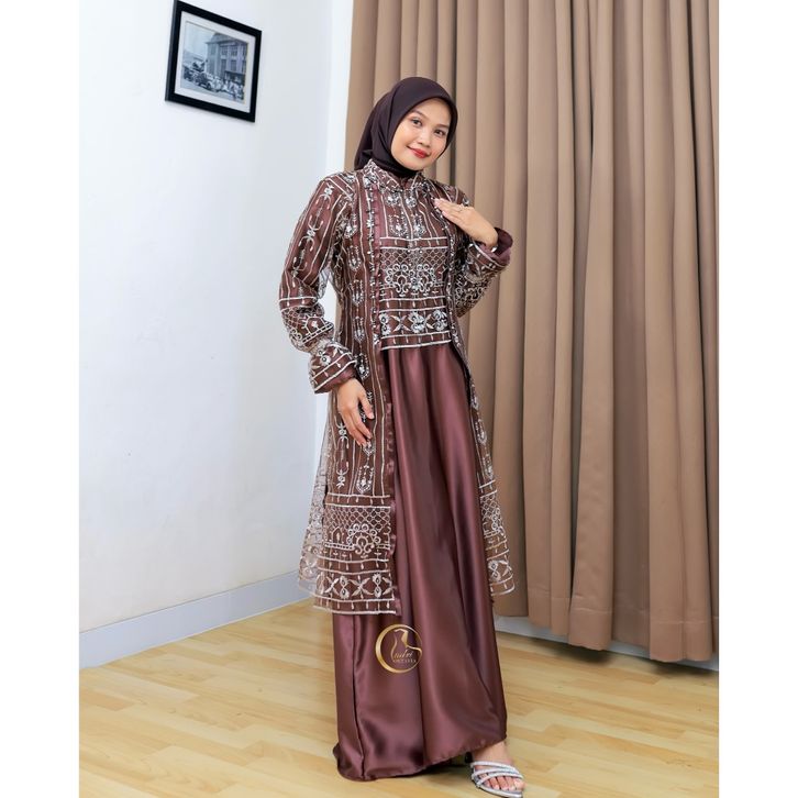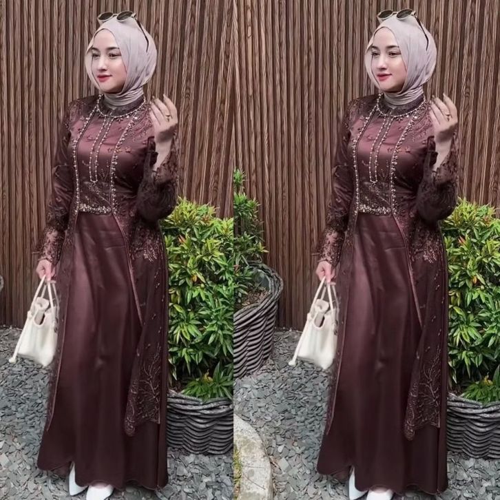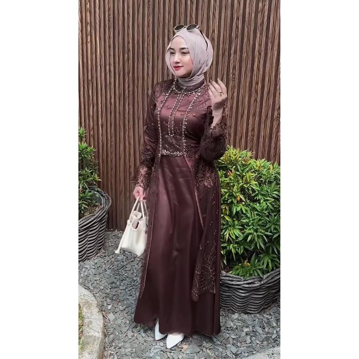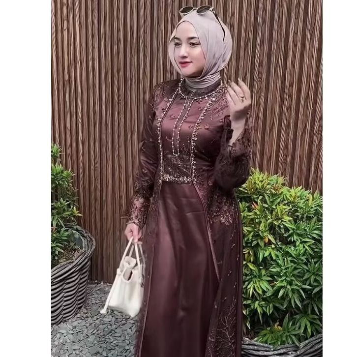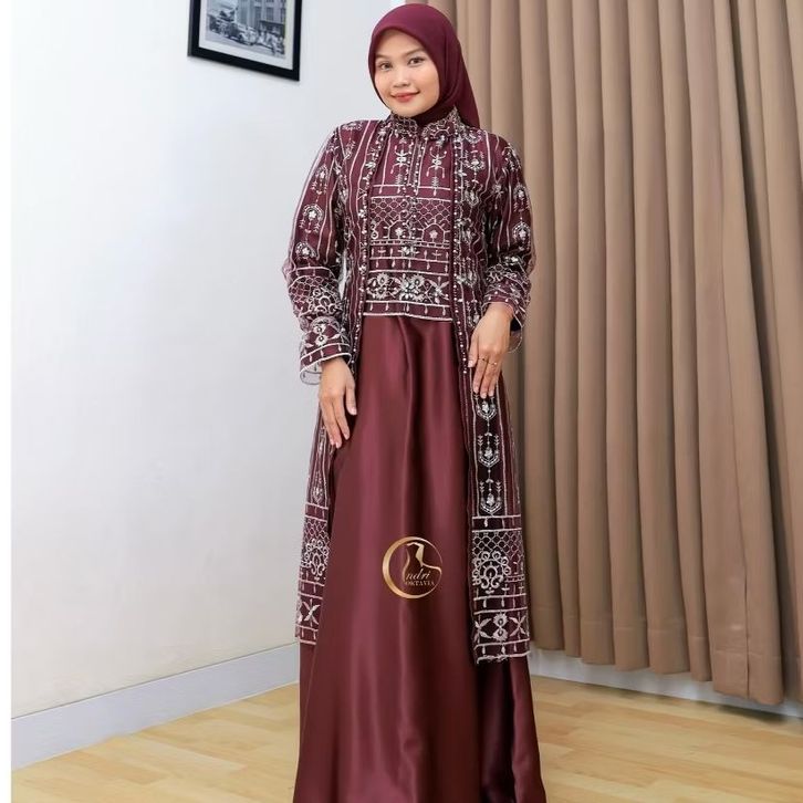 tiara dress silk burgandy set outer brokat payet mutiara baju gamis pesta kondangan wanita kekinian