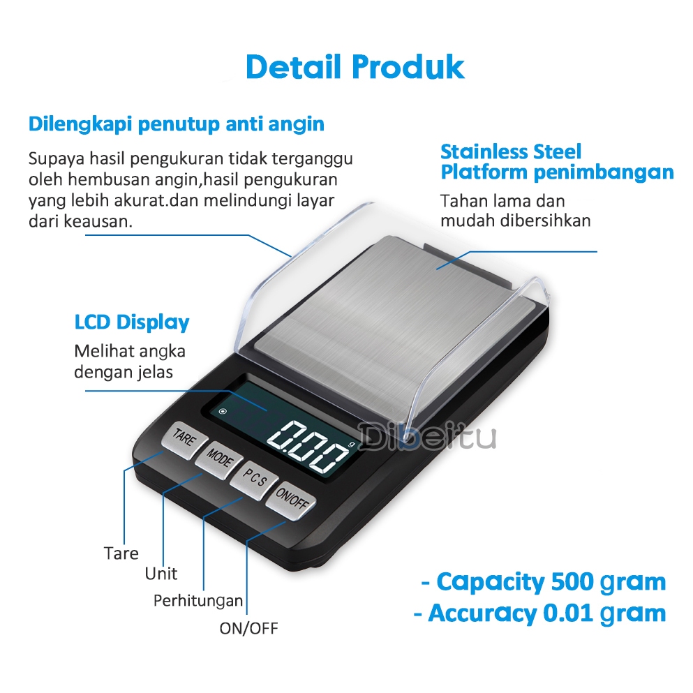 Timbangan Emas 0.01 Gram Mini Digital Pocket Scale 500/0.01 Gram Timbangan Perhiasan Digital
